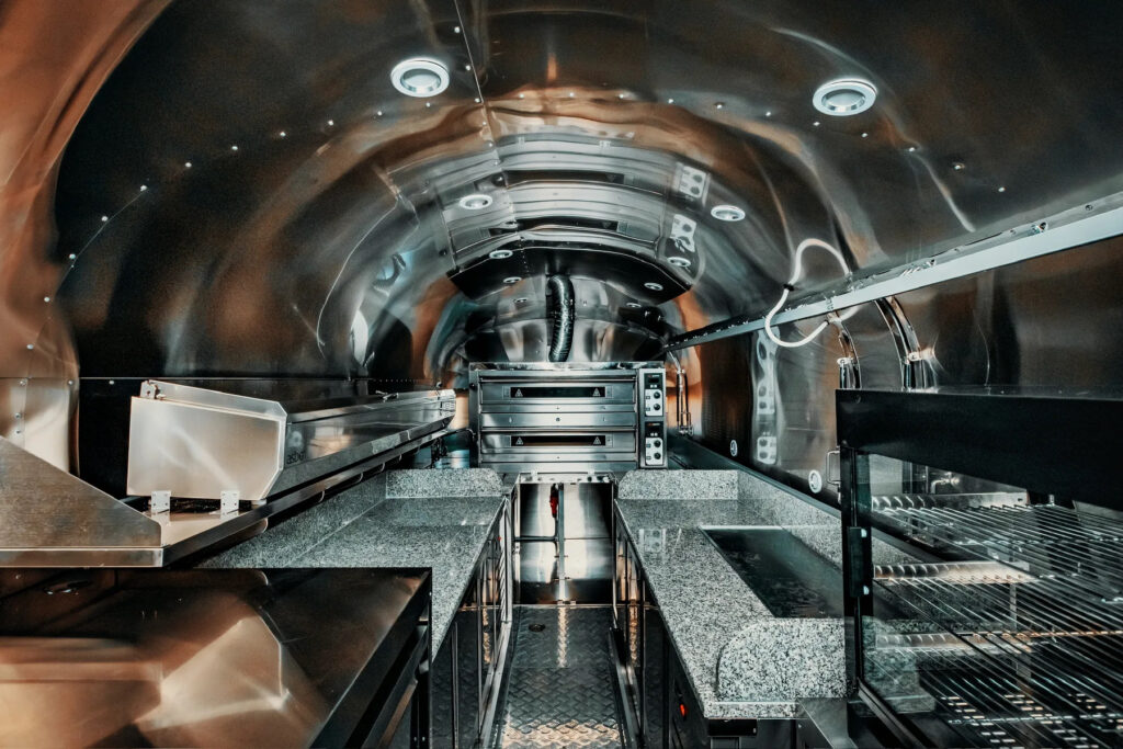 In Gastronomieanhängern der Premiumklasse ist jeder Quadratzentimeter das Ergebnis präziser Planung. Die optimale Anordnung der technologischen Abläufe, hochwertige Belüftungssysteme und eine stabile Stromversorgung ermöglichen komfortables Arbeiten selbst unter extremen Belastungen, sei es bei Sommerevents oder auf winterlichen Märkten. Ein Mitarbeiter, der nicht mit klemmenden Schränken, überhitzten Innenräumen oder einer instabilen Elektroinstallation kämpfen muss, arbeitet schneller und macht weniger Fehler.