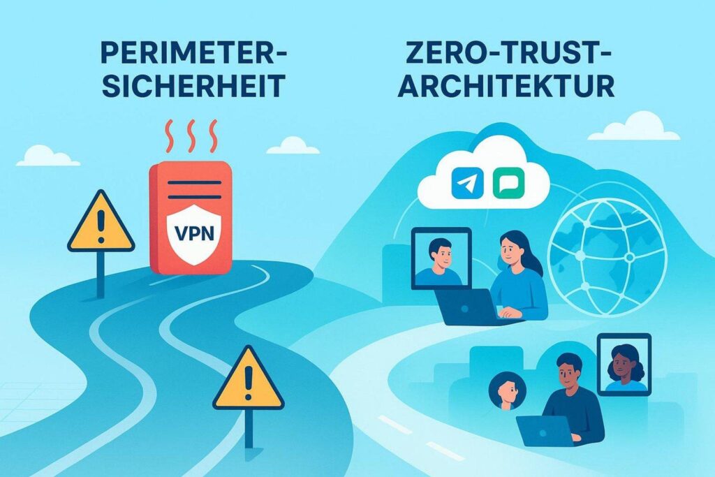 Die Zeit, in der ein Unternehmen wie eine mittelalterliche Festung geschützt werden konnte, ist vorbei. Früher reichte eine starke Firewall als „digitaler Burggraben“, um viele Angriffe zu blockieren. Heute gibt es in verteilten Teams mit Standorten auf verschiedenen Kontinenten keine klare Grenze mehr zwischen „innen“ und „außen“. Laut aktuellen Berichten, etwa dem Bitkom-Report zum Wirtschaftsschutz, ist der Anteil der von Cyberangriffen betroffenen Unternehmen stark gestiegen. Hybride Arbeitsmodelle verstärken diese Entwicklung, weil sie die Angriffsfläche deutlich vergrößern.
